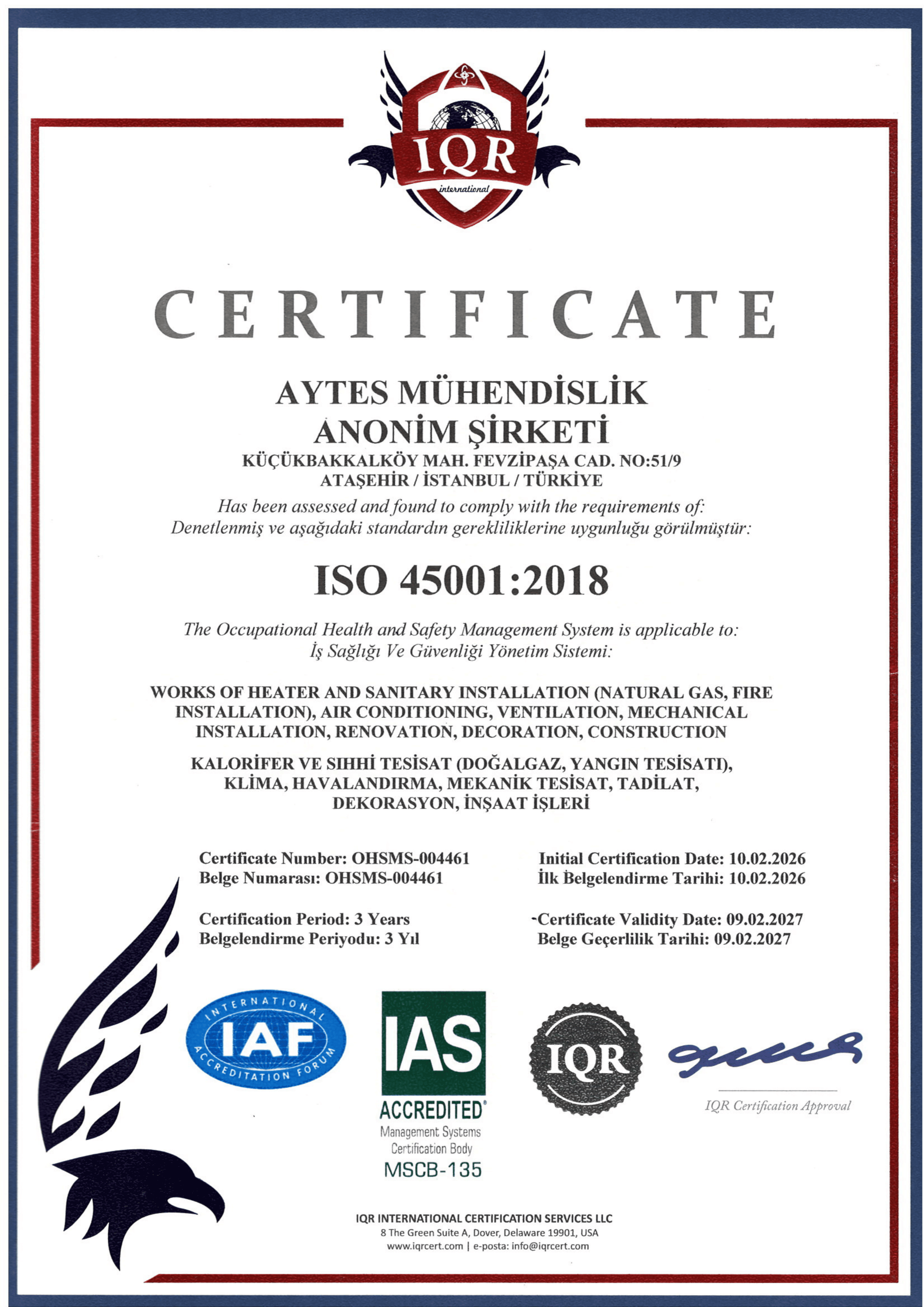 At Aytes Engineering, we always prioritize quality and reliability. Our certifications demonstrate that our services comply with international standards and that we operate according to the highest quality norms. While aiming for excellence in every project, we document this commitment through our certifications. We back up our commitments in trust, quality, and sustainability with the competency documents we possess.